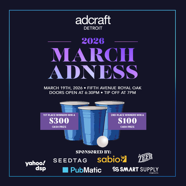 REGISTRATION NOW OPEN **Registration will close at noon ET on Tuesday, March 17th or when the event sells out** Grab a friend and join us for Adcraft's annual March ADness Beer Pong tournament! Team slots sold out fast so consider sponsoring the event. The lucky winners of the tournament will receive $300 and 2nd place will receive $100. Dinner is included with your ticket and drinks will be available for purchase. All (21+) are welcome, even if your partner doesn't work in the industry, so please feel free to extend the invite! No experience required. Not planning to play? No worries come join the fun and register today.
